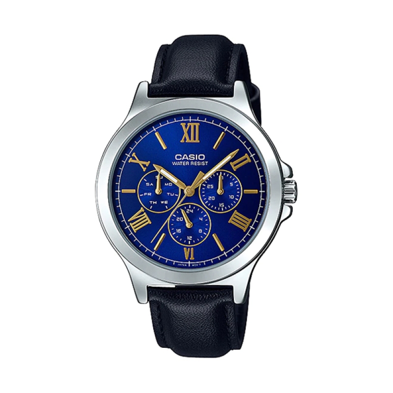 Product Description: Water Date, day and 24-hour Leather Leather Mineral Water Regular Analog: 3 hands (hour, minute, second), 3 dials (date, day, 24-hour) Accuracy: ±20 seconds per Approx. battery life: 3 years on SR920